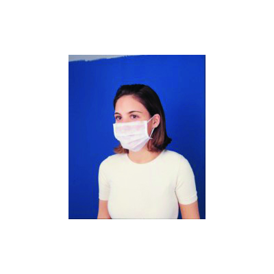 Beyaz, örgüsüz, çift lastikli, ultrasonik dikişli, burun telli, düşük solunum rezistansı, 30 g / m2